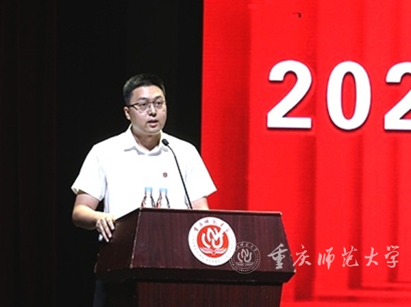研究生新生代表、经济与管理学院2022级企业管理专业的卢凯文同学上台发言。他表示:“现在他已经爱上了中国,爱上了这里的美食和一草一木,在重师的四年本科生活非常愉快,研究生阶段他也将潜心学术研究,不辜负母校和老师的栽培。”