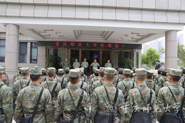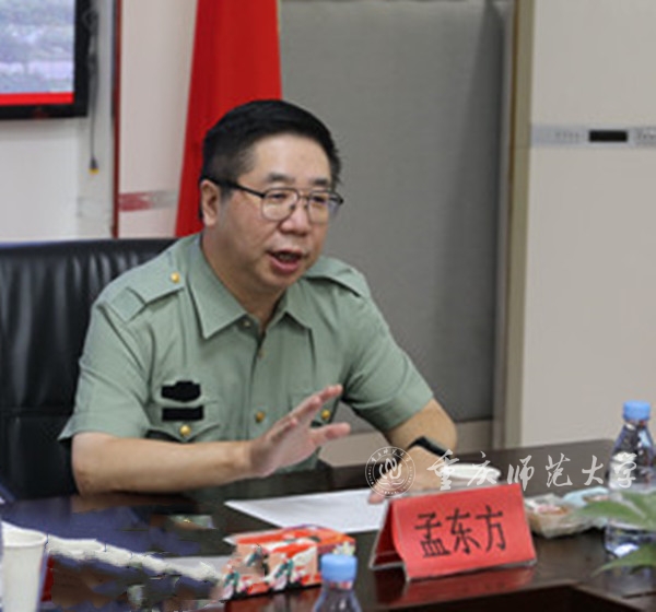 座谈会后,孟东方校长一行前往国风楼慰问承训部队教官。孟校长感谢承训部队对重师大学生军训工作的大力支持,并对军训教官致以节日的问候。