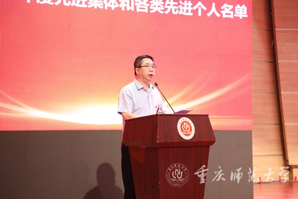大会在雄浑有力的国歌声中拉开帷幕。会上,党委副书记、校长孟东方宣读2021年度校级先进集体和优秀个人表彰决定,党委副书记陈志军宣读2021年度“担当作为好干部”名单,副校长杨如安宣读第八届师德标兵表彰决定,副校长董景荣宣读“最受2022届毕业生欢迎教师”评选结果,纪委书记肖应红宣读从事教学工作和学校工作满三十年人员表彰决定。随后,校领导为受表彰集体和个人颁发荣誉证书。