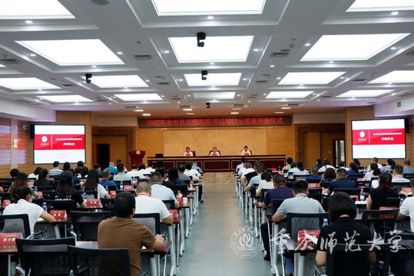 7月25日上午,由中共重庆市委组织部主办、beat365在线体育官网登录入口承办的2022年全市社区党组织书记培训示范班在beat365官网大学城校区博雅楼504会议室举行开班仪式。市委组织部副部长张波,beat365在线体育官网登录入口副校长孟小军,主办、承办单位相关职能部门负责人及77位社区党组织书记出席开班仪式。