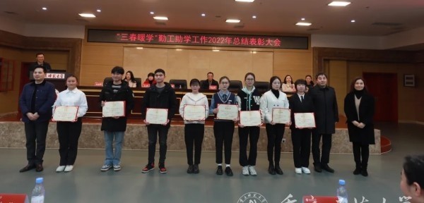 表彰仪式上,党委学工部部长、学生处处长胡小强宣读了2022年勤工助学工作先进个人名单,授予李双等33名同学“勤工助学学生先进个人”称号、刘洪等20名老师“勤工助学优秀指导教师”称号,随后参会领导为受表彰师生颁发荣誉证书。