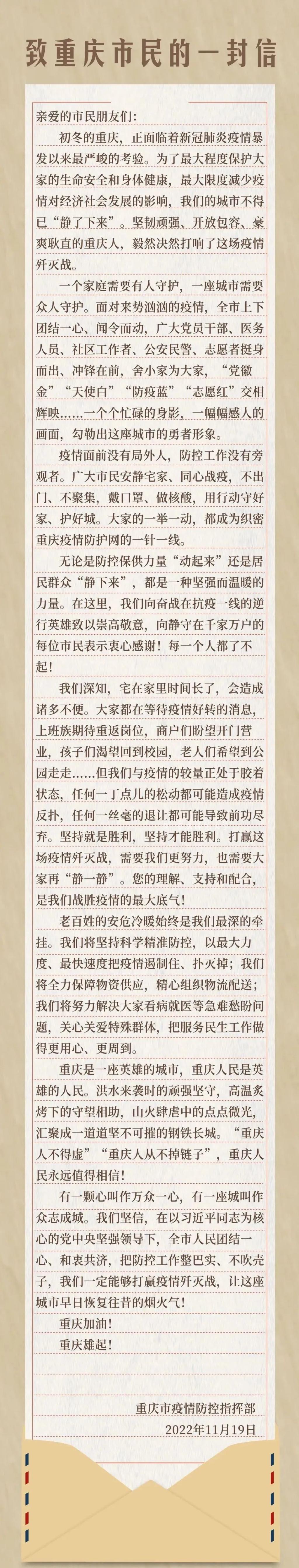 【上级部署】致重庆市民的一封信