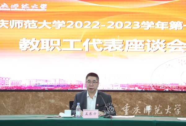 11月9日上午,beat365官网在博雅楼503会议室召开本学期教职工代表座谈会,座谈会主要围绕进一步推进学校依法治校进行意见征集。校党委副书记、校长孟东方,党委副书记陈志军,党委常委、副校长孟小军,相关职能部门主要负责人、来自各分工会的20名教职工代表参加了会议。会议由党委副书记陈志军主持。