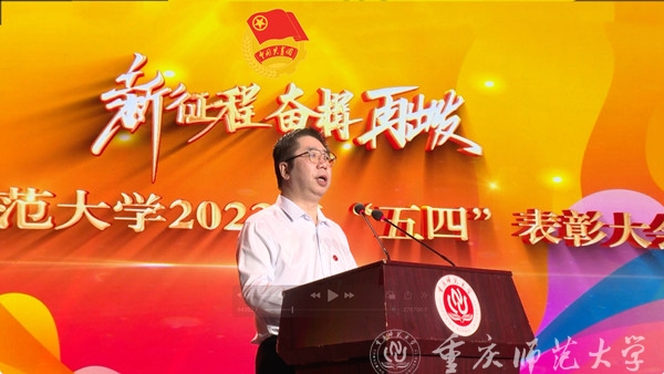 曾礼在讲话中向为学校共青团事业辛勤耕耘、积极奉献的广大团干部表示亲切慰问与衷心感谢。他谈到,新时代的重师青年要志存高远、挺膺而出,自觉将个人理想追求融入到党和国家的事业之中,勇敢肩负起时代赋予的重任。同时,曾礼向全校学子提出三点要求:一是树牢理想信念,做“两个维护”的坚定拥护者;要以实现中华民族伟大复兴为己任,坚定不移听党话、跟党走,不负青春,不负时代,不负党和人民的殷切期待。二是勇担历史重任,做新时代长征路上的忠诚“践行者”;广大重师青年要敢于担当,勇于创新,做起而行之的行动者、攻坚克难的开拓者,努力在实践中经风雨、见世面、壮筋骨、长才干,做砥砺奋进的有为青年。三是永葆青春活力,做中华民族伟大复兴的接续“奋斗者”;发扬奋斗精神和斗争精神,永葆青春活力,以青春之力做接续奋斗的时代新人。