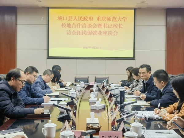 23日上午,城口县副县长江成敏率县人大、县教委、团县委及服务地学校主要负责人热情接待陈志军一行。双方举行校地合作洽谈会暨书记校长访企拓岗促就业座谈会。江成敏主持会议。