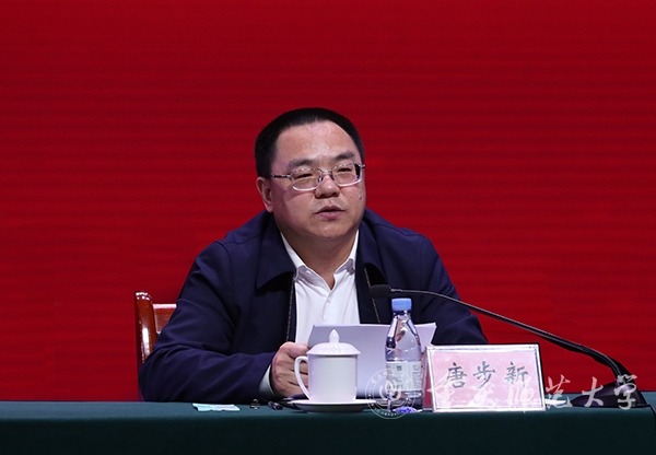 唐步新传达了中央主题教育工作会议和重庆市主题教育动员会的主要精神,介绍了巡回指导组的工作职责,对学校推动落实主题教育提出五点要求:一要提高政治站位,深刻认识开展主题教育的重大政治意义、理论意义和实践意义,引导广大党员、干部教师深刻领悟“两个确立”的决定性意义,坚决做到“两个维护”;二要把握目标要求,全面把握、准确理解主题教育总要求,与全面贯彻党的教育方针、加强党对高校的领导、深入实施学校“十四五”规划紧密结合,切实履行为党育人、为国育才的职责使命;三要围绕根本任务,把深入学习贯彻习近平新时代中国特色社会主义思想这一根本任务作为鲜明主线,推动广大党员干部师生真学真懂真信真用,自觉做习近平新时代中国特色社会主义思想的坚定信仰者和忠实实践者;四要紧盯具体目标,坚持目标引领和问题导向相结合,以具体目标为牵引,以解决问题为抓手,推动各项任务落实落地,确保主题教育沿着正确方向积极推进;五要贯通重点措施,把理论学习、调查研究、推动发展、检视整改、建章立制贯通起来,突出重点、抓住关键,统筹兼顾、整体推进,把每项工作都做扎实、做到位。