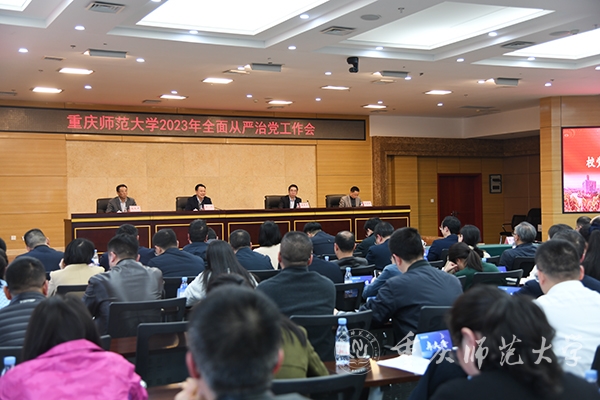 3月21日下午,beat365官网2023年全面从严治党工作会在博雅楼504会议室召开。会议的主要任务是:学习贯彻上级会议精神,回顾总结2022年学校全面从严治党工作,部署2023年工作任务。全体校领导、副处级以上领导干部及有关二级单位科级干部参加了此次会议,校党委副书记陈志军主持大会。