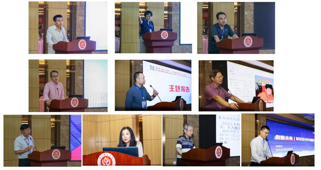 主旨报告阶段,9 位来自学界和业界的嘉宾分享了在数字出版、新媒体传播、出版人才培养等方面最新研究成果,西南政法大学新闻与传播学院裴永刚教授主持会议。中国编辑学会副会长兼秘书长乔还田作题为《中国式现代化进程中编辑出版业数字化发展的思考》的主题报告;北京印刷学院副校长王关义教授探讨了新文科背景下出版拔尖创新人才培养的改革思路;《新闻与传播研究》副主编刘瑞生作题为《新媒体生态与我国新闻传播研究的转向》的主题报告;中国人民大学新闻与社会发展研究中心新媒体研究所所长匡文波教授以AI科技主播为切入点,分析了AI 对出版业的影响;复旦大学新闻学院暨全球传播全媒体研究院研究员姜华作题为《从辛弃疾到GPT:人工智能对人类知识生产格局的重塑及其效应》的主题报告;南京大学出版研究院副院长杨海平教授从定义、实现路径、指标评价体系和未来展望四方面分享了他对智慧出版的研究;武汉大学信息管理学院出版研究所所长徐丽芳教授作题为《虚拟现实媒介叙事:美学的维度》的主题报告;中国大百科全书出版社原社长、电子网络编辑专委会创会主任田胜立作题为《从数字阅读看融合出版与智能服务》的主题报告;北京北大方正电子有限公司融媒体产品部总经理林存水作题为《数智未来|赋能新闻传播教育》的主题报告。