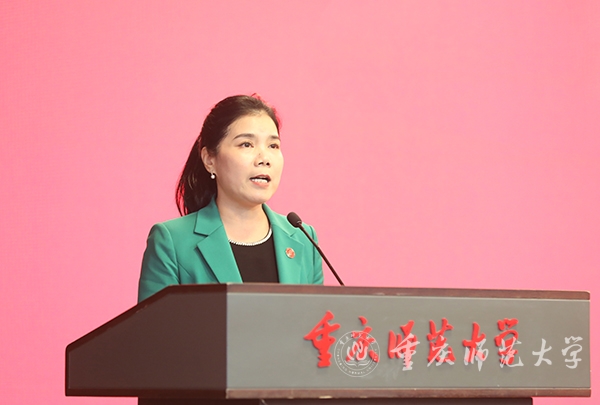 校友代表、1990级数学教育专业校友、重庆市第八中学副校长付英在发言中表示,感谢母校在光影交替的岁月里教会自己如何离巢、起步、振翅、高飞;教会自己如何变得更好,飞的更远更高。“一往情深深几许,唯祝母校发展越来越好,如日之升,如月之恒,如秉烛明。”