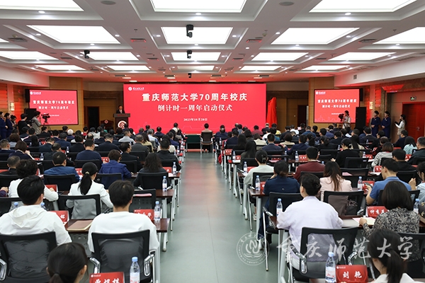 随后,张艳、孟东方、邓卓明、邱宝利、1979级校友江云、1990级校友付英、研究生代表龚财文、本科生代表张茜共同上台开启“beat365在线体育官网登录入口70周年校庆倒计时”;张艳与孟东方共同揭幕beat365在线体育官网登录入口70周年校庆倒计时牌,beat365在线体育官网登录入口70周年校庆正式进入一周年倒计时。