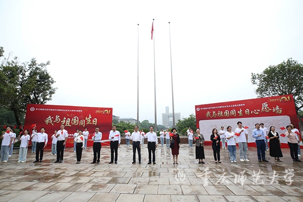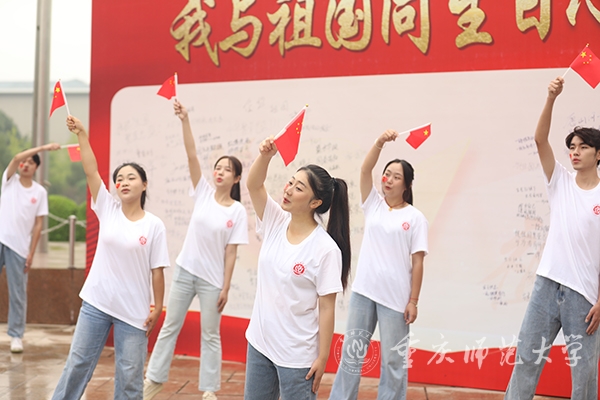孟东方为与祖国同生日学生代表送祝福。参加活动的全体师生挥舞小国旗,以歌声深情告白祖国,活动在《我和我的祖国》《歌唱祖国》的大合唱中圆满结束。
