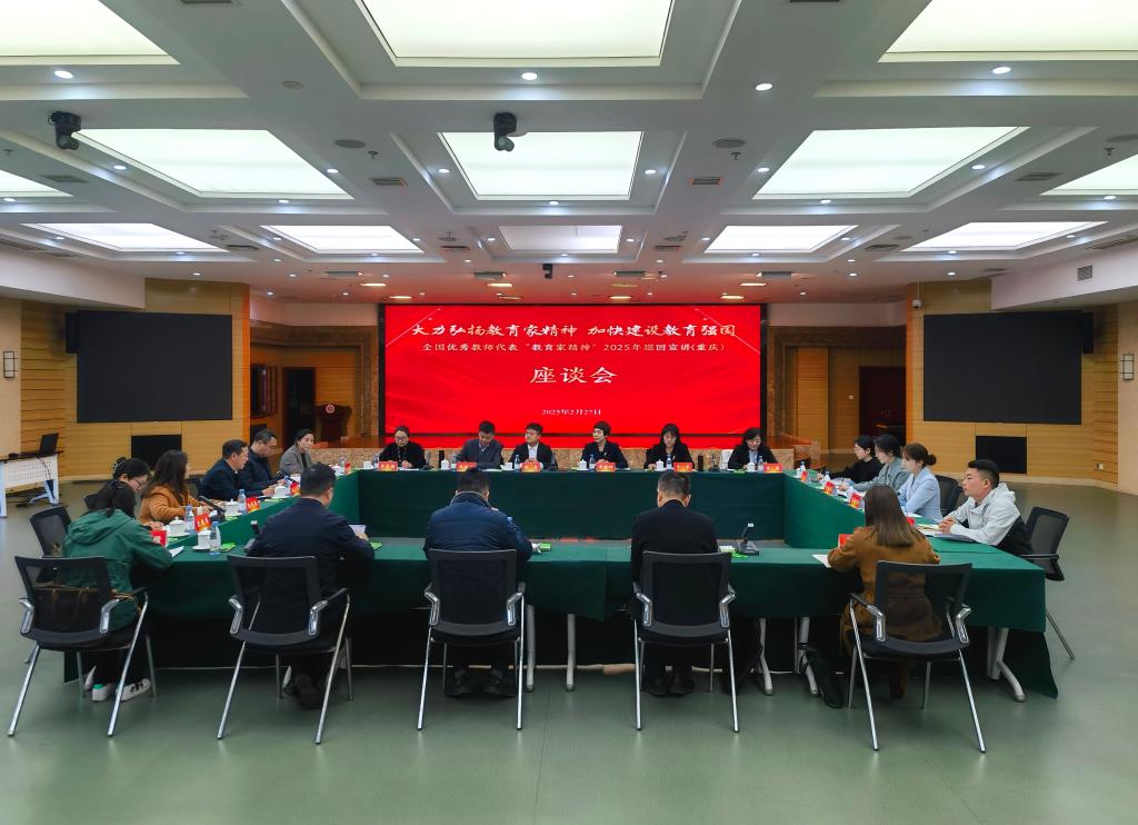 宣讲会结束后,宣讲团成员与重庆部分中小学、高校教师和师范生代表进行了座谈,面对面地交流探讨如何弘扬践行教育家精神。
