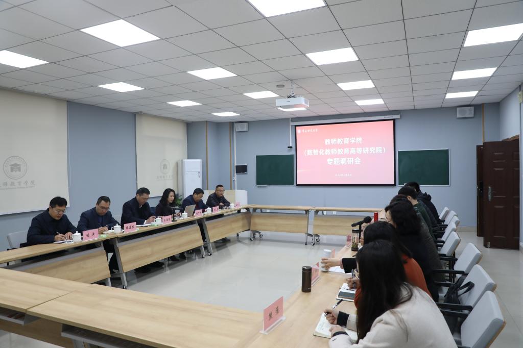 座谈会上,教师教育学院院长李祚山重点汇报了数智化教师教育高等研究院建设、教师教育学科建设、师范生人才培养和改革等工作进展,职教师资学院院长郝明君重点汇报了学院的发展现状、发展规划、发展困境及发展建议。