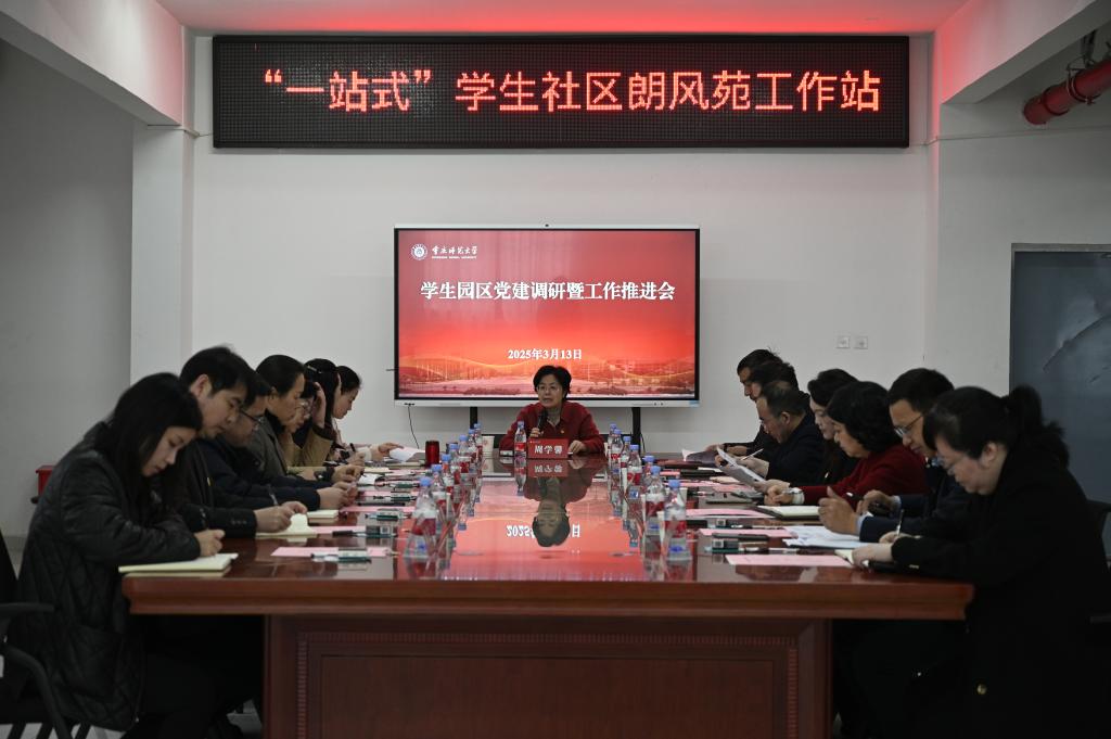 3月13日下午,学校党委副书记周学馨在“一站式”学生社区朗风苑工作站会议室主持召开学生园区党建调研暨工作推进会,深入了解学生园区党建工作情况以及研究部署2025年学生园区党建工作。