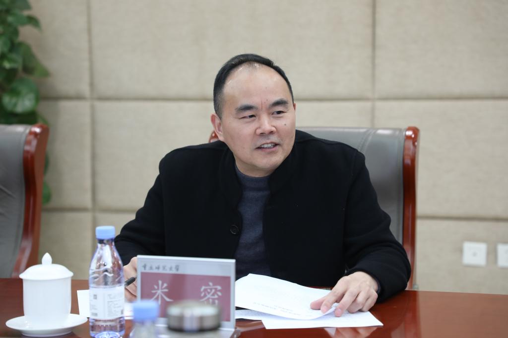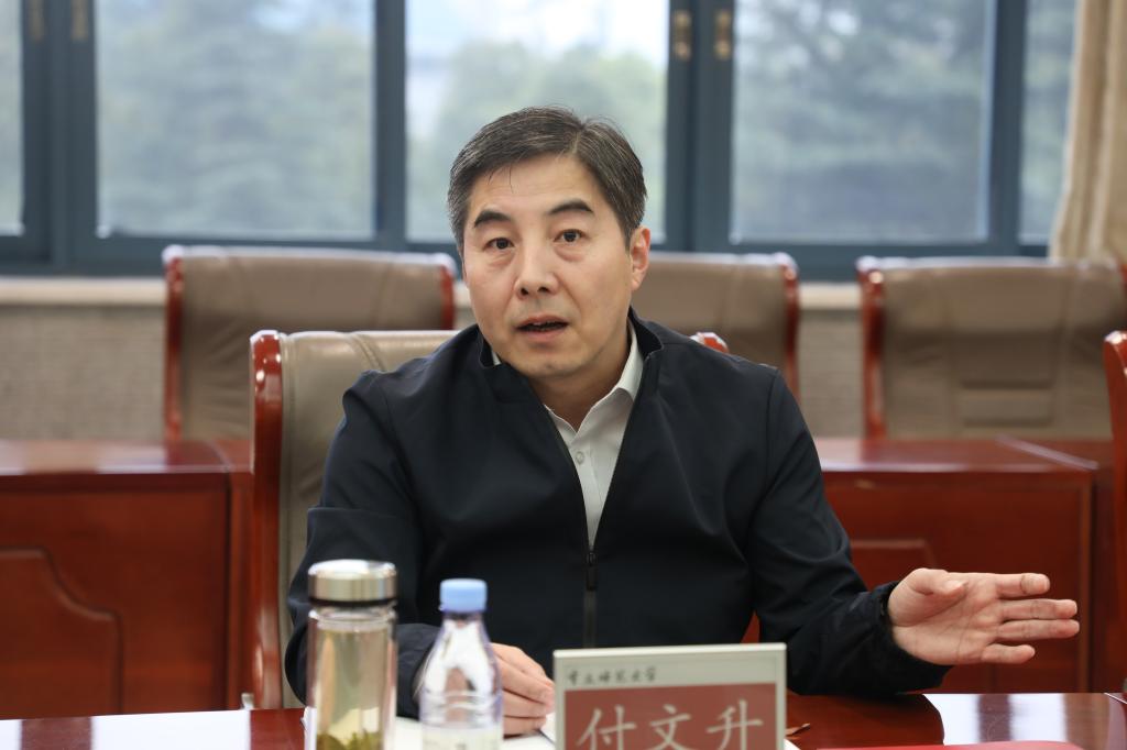 付文升代表学校对米密、丁廷发一行来校调研表示热烈欢迎,并介绍学校发展规划和事业发展情况。他希望,两校发挥各自优势,增进交流互鉴,持续深化基本建设、后勤保障领域的交流合作,共同推动办学治校水平迈向新台阶。