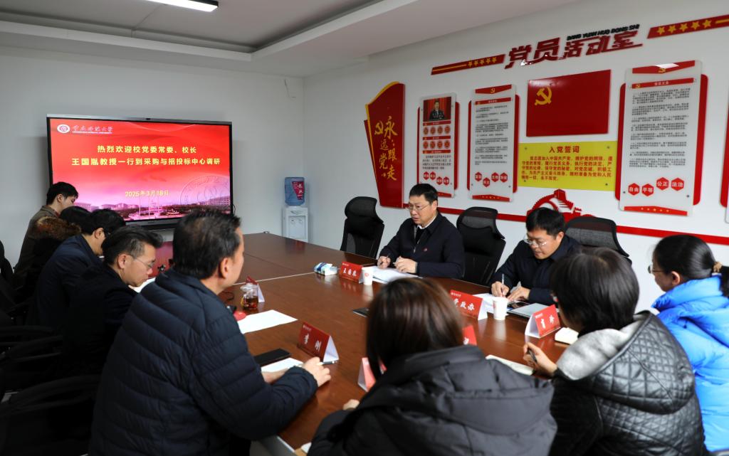 3月17日至18日,学校党委副书记、校长王国胤带队赴化学学院、经济与管理学院、采购与招投标中心、基本建设管理处调研。