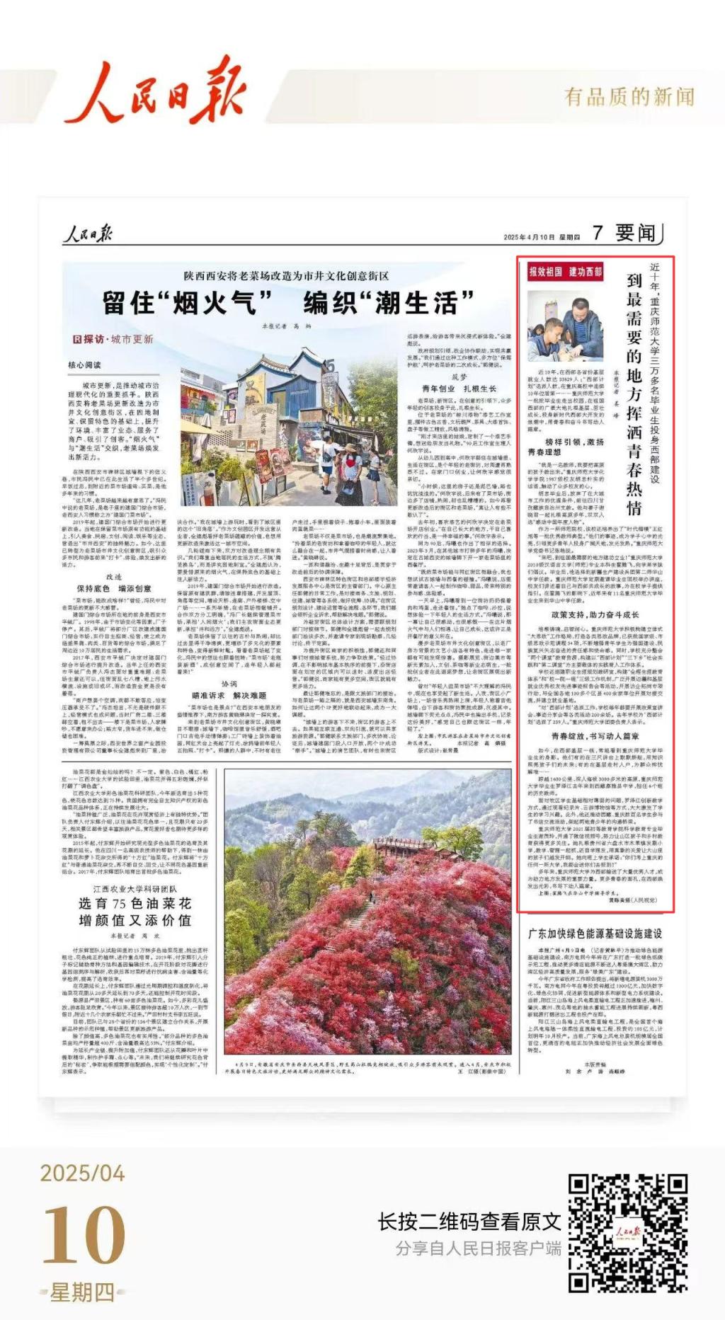 多年来,beat365在线体育官网登录入口为西部输送了大量优秀人才,成为助力地方发展的重要力量。更多青春的面孔,在西部焕发出光彩,书写下动人篇章。