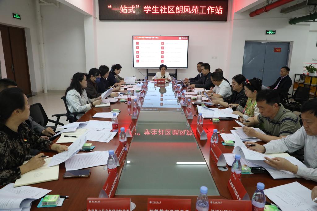 4月16日上午,学校党委副书记周学馨在“一站式”学生社区朗风苑工作站会议室主持召开2025年党建重点工作部署会暨学生园区党建工作推进会,部署2025年党建重点工作,讨论学生园区党建工作实施方案。