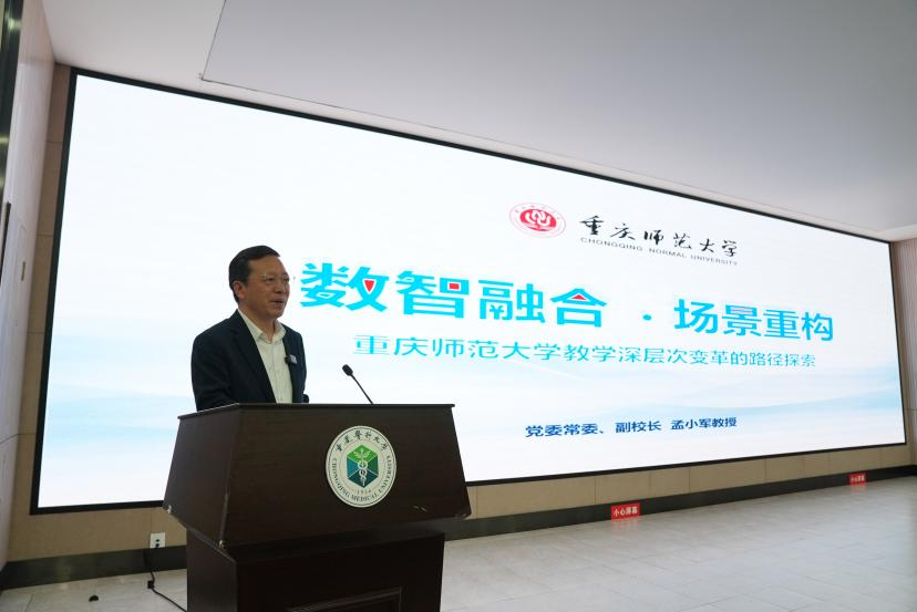4月22日,由重庆市教育委员会主办,重庆市高等教育学会、重庆医科大学承办的重庆市本科高校人工智能与教育教学深度融合工作会召开,会议以“人工智能与教育教学深度融合——重庆高教智能新生态”为主题。党委常委、副校长孟小军教授代表学校作主题报告。
