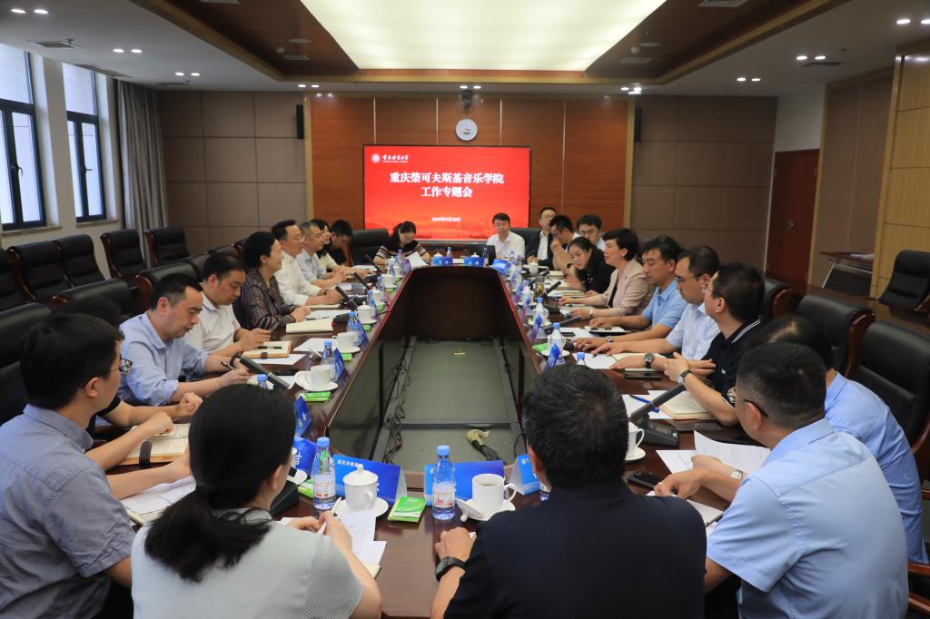5月20日,重庆市委教育工委委员、市教委副主任金玲率队来校专题调研,指导推进“beat365在线体育官网登录入口重庆柴可夫斯基音乐学院”(以下简称“重庆柴院”)建设工作。学校党委书记张艳参会并发言,学校党委常委、副校长黄永宜主持会议。