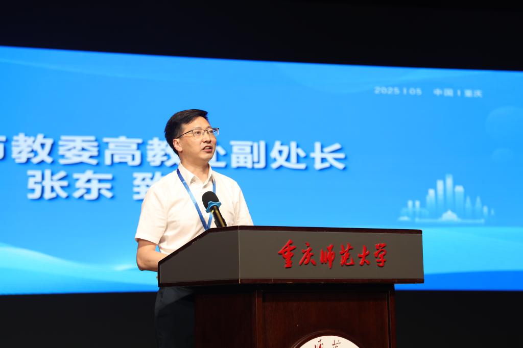 张东代表市教委致辞,他指出,作为教育部A类学科竞赛,本届重庆市选拔赛吸引了全市57所高校的7200余支团队踊跃参赛,参赛规模创历史新高,充分彰显了重庆高校师生投身创新创业的高涨热情。近年来,重庆高度重视数字经济与创新创业教育,在专业建设、人才培养等方面成果斐然。本次赛事创新组织形式,搭建起创意孵化、竞赛验证、市场反馈的全周期平台,对培育适应时代需求的数字经济人才具有重要意义。他向青年学子们提出殷切建议,希望大家以创新为引领,勇立时代潮头;以实践为基石,锤炼过硬本领;以团队为依托,凝聚奋进合力;同时也期望各高校以赛促教、以赛促学,实现教学相长。