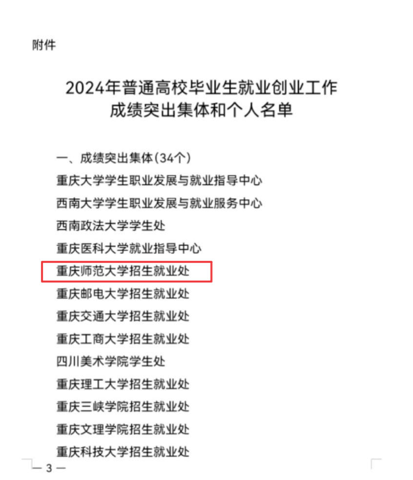 近日,beat365官网招生就业处获评“重庆市2024年普通高校毕业生就业创业工作成绩突出集体”,招生就业处副处长王睿获评“重庆市2024年普通高校毕业生就业创业工作成绩突出个人”。