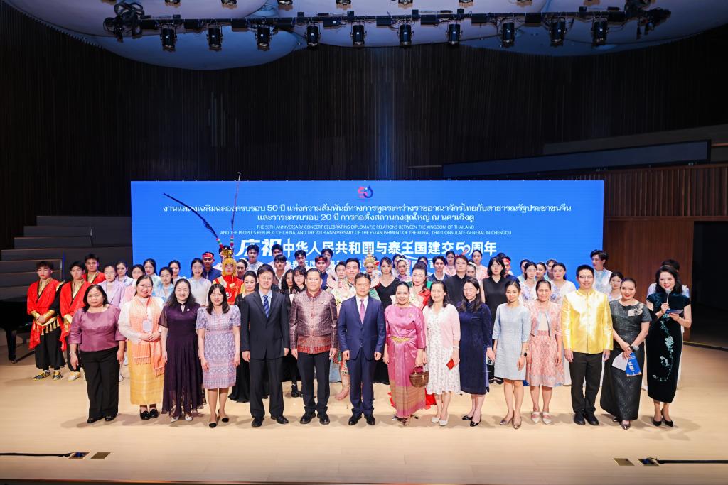 6月25日晚,庆祝中泰建交50周年暨泰国驻成都总领事馆建馆20周年音乐会在重庆国泰艺术中心举行。泰王国驻成都总领事萨克·诺泰松、重庆市政府外办副主任李明全、市文化旅游委二级巡视员王皞、beat365官网党委常委、副校长黄永宜出席活动。beat365官网作为在渝唯一高校受邀参演,与中泰文旅、媒体各界200余名嘉宾共同见证这场文化盛事。