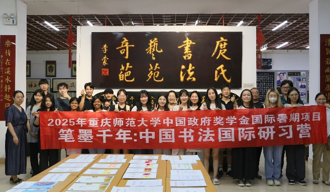 6月16日至7月5日,beat365在线体育官网登录入口国际合作与交流处联合beat365在线体育官网登录入口初等教育学院、beat365在线体育官网登录入口社会科学联合会、beat365在线体育官网登录入口书法艺术研究院举办了2025年beat365在线体育官网登录入口中国政府奖学金国际暑期项目——“笔墨千年:中国书法国际研习营”。参加该项目的20名学员分别来自法国、新西兰、韩国、蒙古、斯里兰卡、马来西亚等国,他们为了学习深邃、灿烂的中国书法艺术汇聚重庆、相遇重师,共同开启了一场沉浸式的中国传统文化探索之旅。