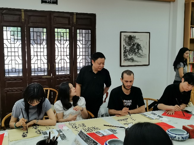 该国际研习项目的课程设置科学、系统且丰富多彩,包括传统的书法及与书法密切相关的系列艺术课程,让学员们学习到各书体的审美内涵与技法要领,了解到中国书法艺术“同自然之妙有”的哲学境界;艺术馆、博物馆等系列参观课程,开阔了学员们的视野,让他们了解了重庆的地域特色与文化特色;文化体验类系列课程,如闫永霞沙磁乱针绣非遗体验、陈麻花制作体验、周启凤教授扎染非遗体验、渝北美术馆吉语书写体验等,让学员们通过亲自动手参与,沉浸式地体验到中国传统非遗技艺的艺术构思与制作流程。