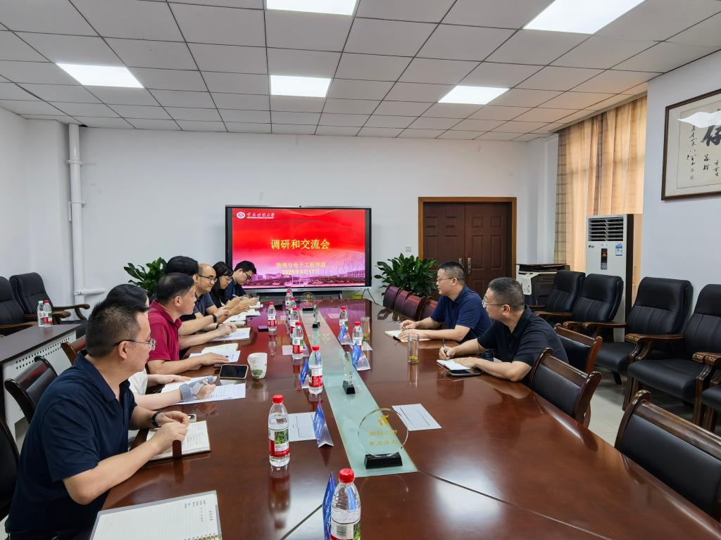 9月17日,beat365官网党委常委、纪委书记贺吉胜到物理与电子工程学院开展专题调研并召开座谈交流会。物理与电子工程学院党委书记杨云主持会议。