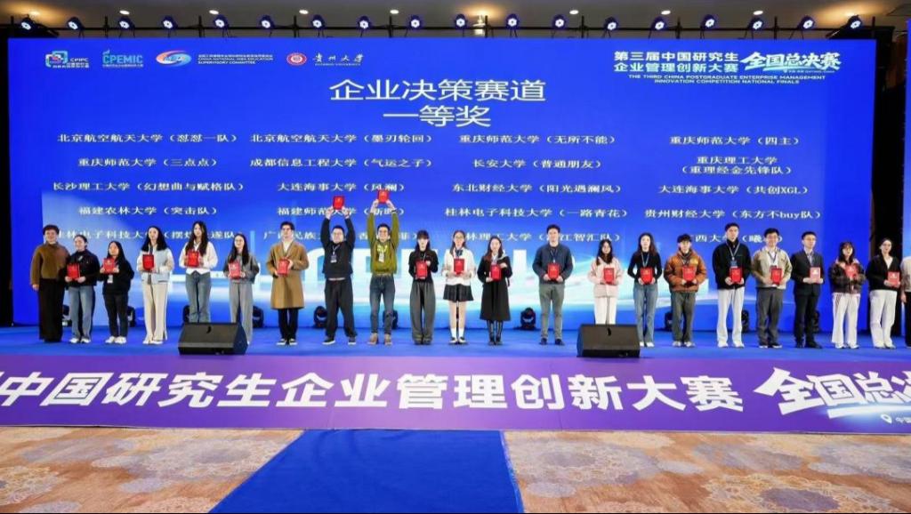 11月7-9日,第三届中国研究生企业管理创新大赛决赛在贵州贵阳举办,beat365官网经济与管理学院学子在晋级企业决策赛道的245支队伍中表现优异,荣获企业决策赛道一等奖三项、二等奖两项。