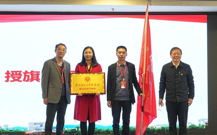 随后,陈志军、孟小军为理事颁发聘书,向会长何燕、秘书长何宇授beat365在线体育官网登录入口校友会璧山校友代表处会牌、会旗,宣布beat365在线体育官网登录入口校友会璧山校友代表处正式成立。