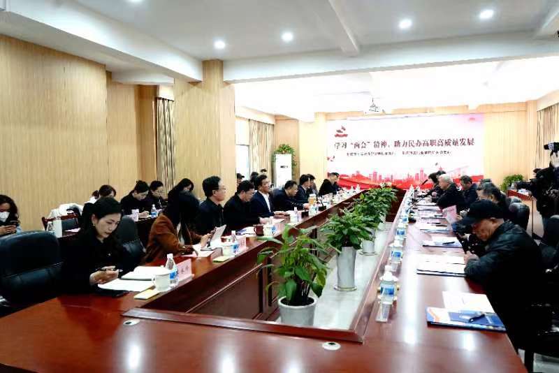 为了深入学习“两会”精神,把全国“两会”精神融入到各项工作中,落实到具体行动上,重庆市高等教育学会特设党支部、重庆轻工职业学院机关党支部联合举办了此次活动。重庆市高等教育学会原执行会长张宗荫、重庆文理学院原党委书记孙泽平、重庆医科大学原党委副书记、副校长邓世雄、重庆城市管理职业学院原党委书记任波、重庆工程职业技术学院校长张进、重庆电子工程职业学院校长聂强等党员代表参加。