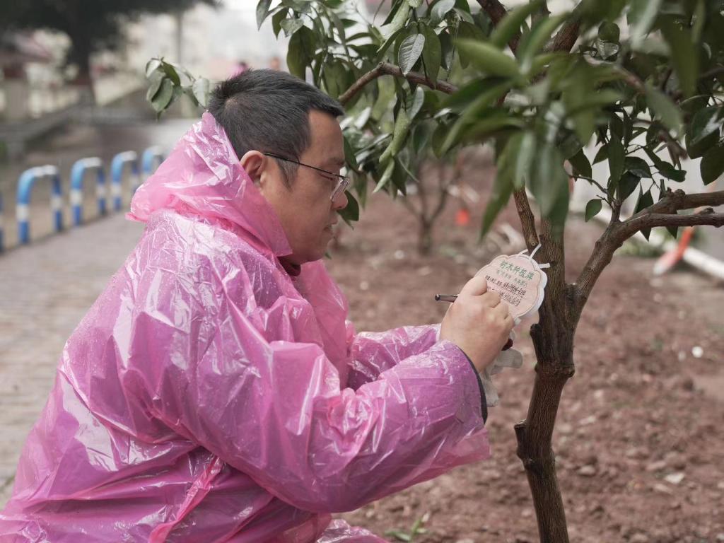 西南大学师生逐一给树挂上“身份证”,栽种信息一扫便知。受访单位供图
