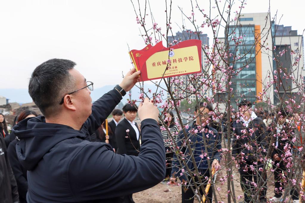 重庆城市科技学院师生携手为巴南新校区第一片“共青林”揭牌。受访单位供图