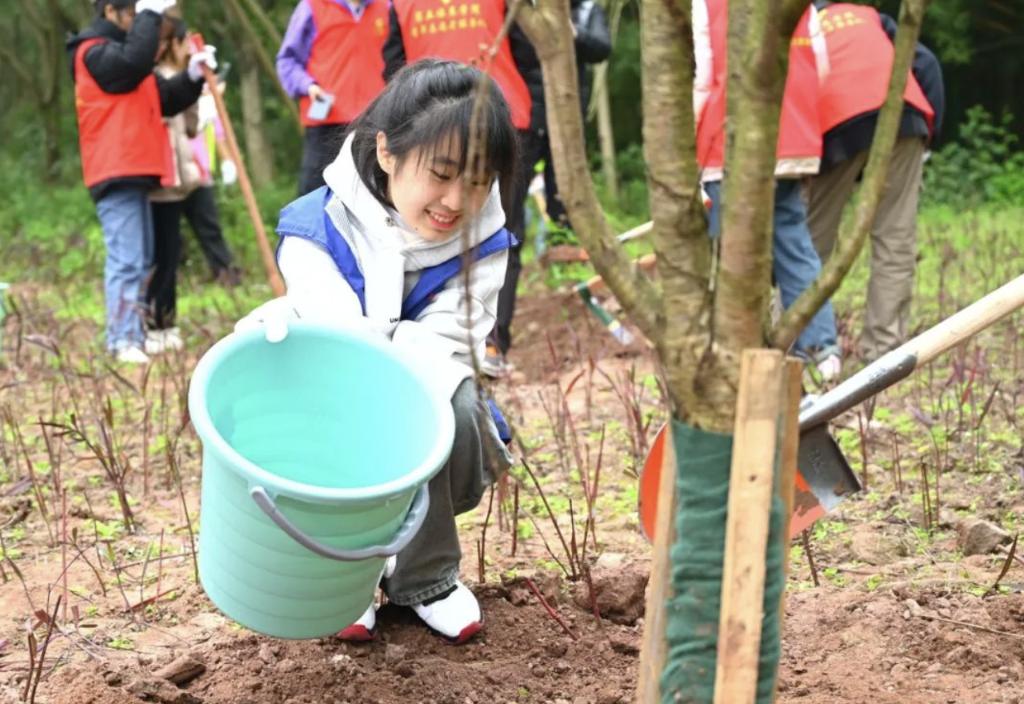 草长莺飞季,植绿正当时,重庆大学“小青鱼”志愿者们掀起植绿爱绿护绿的热潮,他们穿梭于田间地头、校园内外,用实际行动积极践行“两山理论”,为建设新重庆播新绿、添生机。3月12日,50多名“小青鱼”志愿者来到沙坪坝区覃家岗街道、凤凰镇等地开展义务植树志愿服务活动。志愿者们热情高涨,干劲十足,在专业人员的指导下铲土造坑、培土围堰、提水浇灌。经过志愿者们的通力协作,一株株桂花树、桃树、蜂糖李树植入土地,在和睦的春风中焕发出盎然生机。