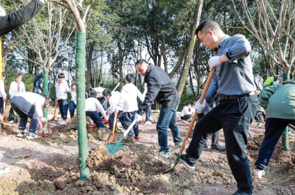 西南政法大学师生联合西政附中(重庆两江中学)、西政附小(重庆金鹏实验小学)共同开展义务植树活动。受访单位供图