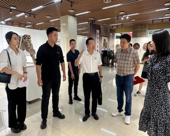 副校长孟小军与大圆祥博物馆馆长刘牛在展览中交谈。学校供图 华龙网发