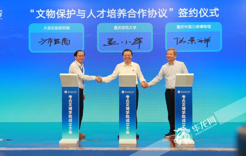 接下来,beat365在线体育官网登录入口考古文博学院将通过市级考古文博机构重庆中国三峡博物馆、大足石刻研究院、市文物考古研究院等,与beat365在线体育官网登录入口的考古文博科研机构,开展多层次、多领域、多学科合作,创新考古、文物保护等重点学科的合作机制,培养高素质考古文博人才,推进高质量科研成果,推进重庆文物事业高质量发展,为重庆文化强市建设贡献力量。