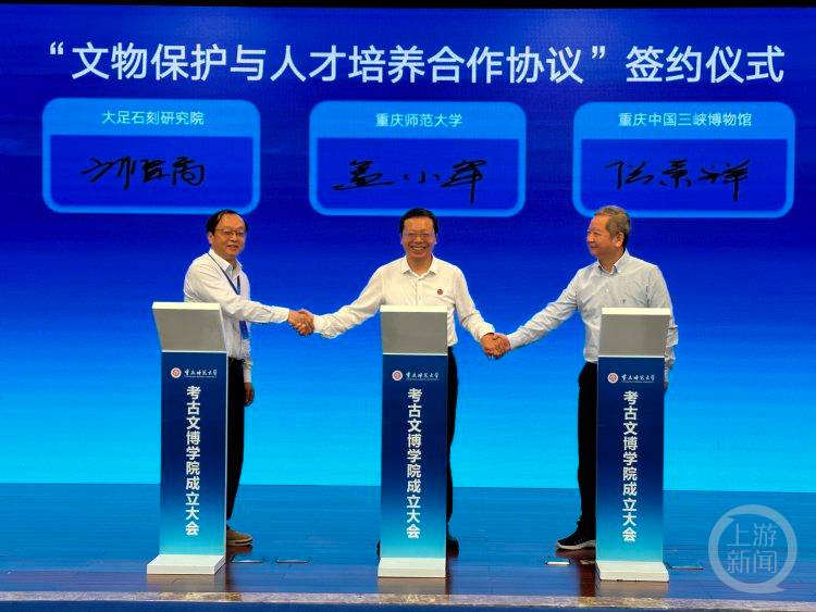 9月25日,beat365在线体育官网登录入口考古文博学院(以下简称考古学院)成立大会在beat365在线体育官网登录入口举行。上游新闻记者在现场了解到,该学院系西部地区首个由省级文物主管部门和高校共建的考古学院,这也是重庆首个考古学院。
