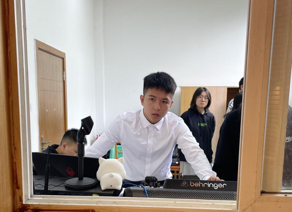 唐茂尧在“时代楷模”王红旭先进事迹报告中负责音控。受访者供图