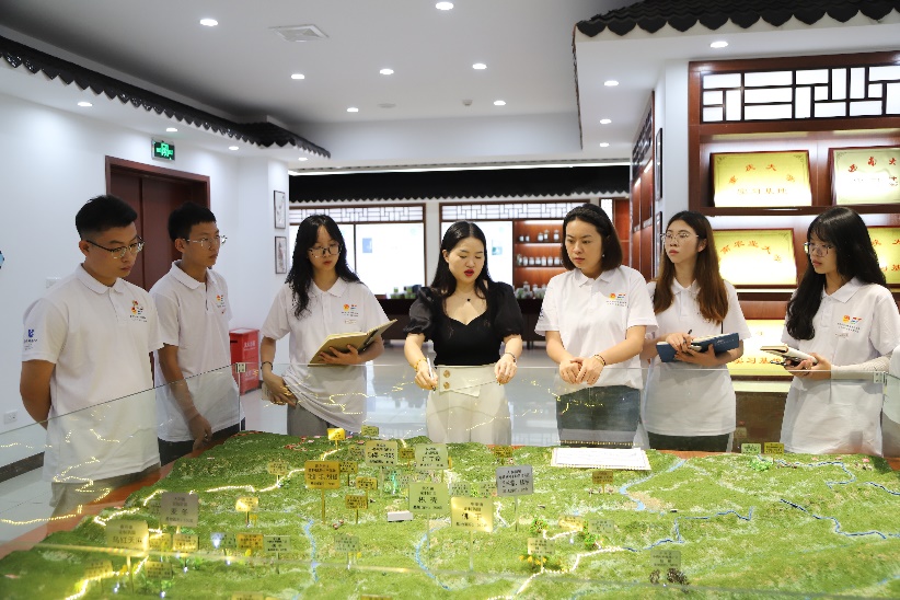 在天生云阳电商直播区,了解到该公司通过线下传统销售和线上电商平台,实现产销对接,拓宽产品销售渠道,助推产业升级,促进农民增收。同时,实践团也在这里见到了三峡阳菊、宏霖食品、云海药业等销售商品,进一步认识农产品从种植、加工到售卖的全产业链条,明晰云阳现代乡村产业体系,理解推动农村一二三产业融合发展战略意义。