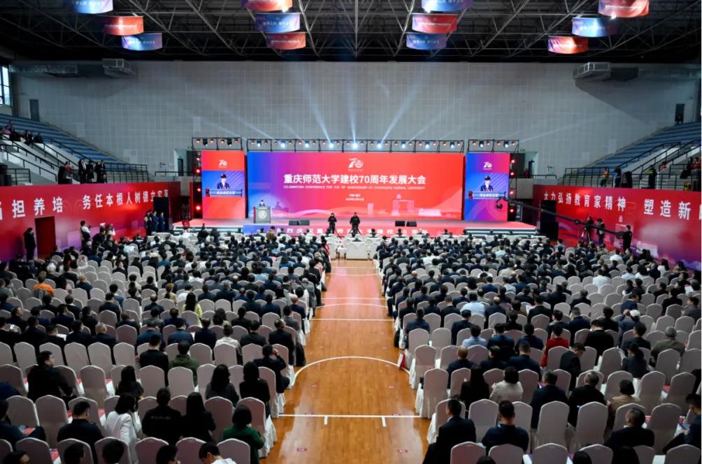 上午10时,重师建校70周年发展大会在beat365在线体育官网登录入口大学城校区学校篮球馆隆重举行,beat365在线体育官网登录入口党委书记张艳主持会议。会上,重师党委副书记、校长王国胤以《七秩荣光铸辉煌 卓越发展谱新篇 为建设教师教育特色鲜明具有国际影响的全国一流综合性师范大学而团结奋斗》为题作学校发展报告。