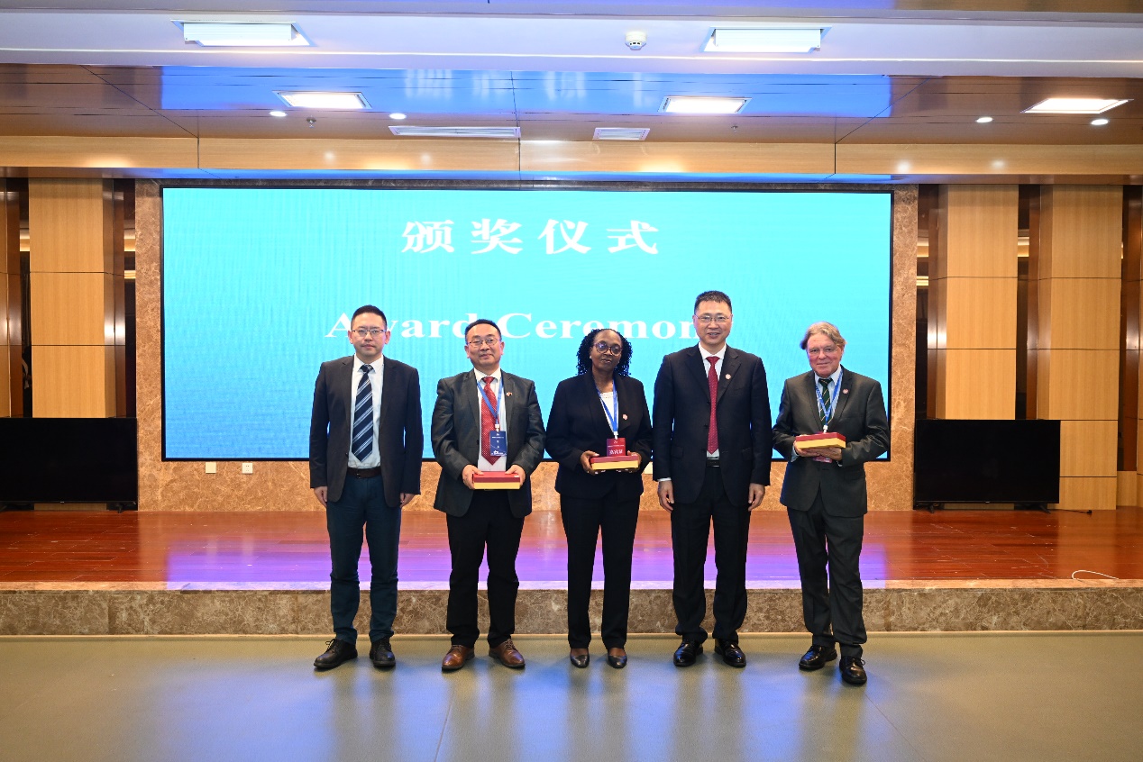 会议期间,举行了beat365在线体育官网登录入口孔子学院十年纪念奖授牌仪式,beat365在线体育官网登录入口校长王国胤为巴布亚新几内亚科技大学孔子学院中方院长张显、卢旺达大学孔子学院外方院长毕翠丝、英国知山大学孔子学院外方院长马克颁发了beat365在线体育官网登录入口孔子学院十年贡献奖。