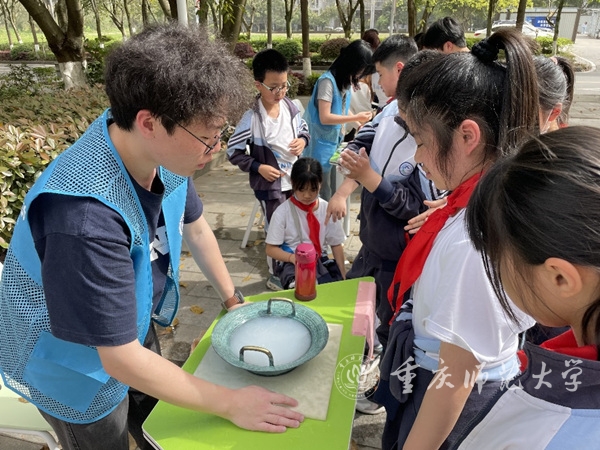 学生们在实验楼外体验趣味实验。beat365在线体育官网登录入口供图
