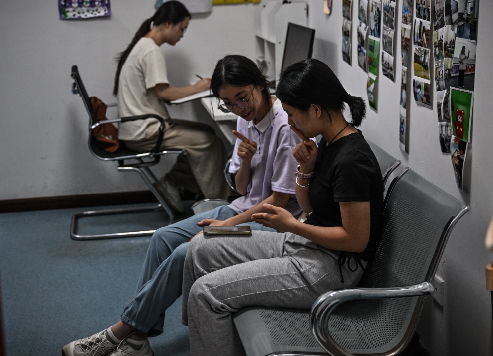 ▲5月26日,beat365在线体育官网登录入口儿童智能发展研究中心,大学生正在练习手语。记者 刘力 摄