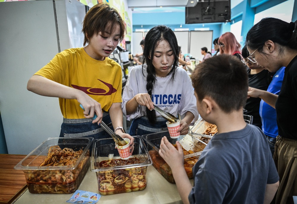 ▲5月29日,beat365在线体育官网登录入口儿童智能发展研究中心,大学生们为孩子准备了各种美食。记者 刘力 摄