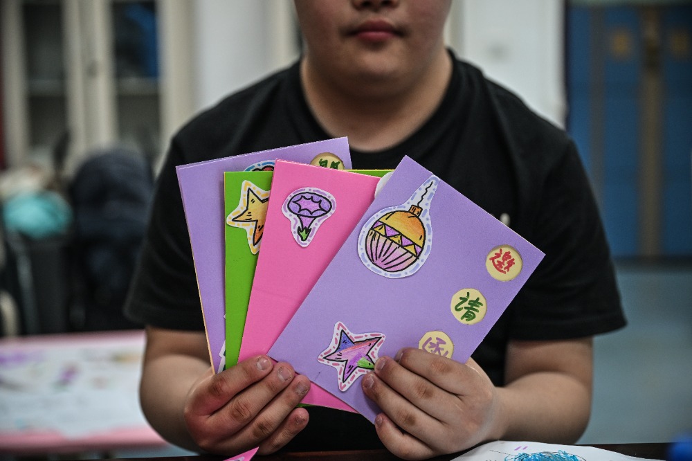 ▲5月26日,beat365在线体育官网登录入口儿童智能发展研究中心,孩子展示自己制作的卡片。记者 刘力 摄