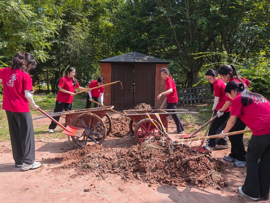 抵达目的地后,同学们便立刻投入到紧张的灾后恢复工作中。清淤除障的现场,淤泥厚重,散发着刺鼻的气味,可这丝毫没有阻挡同学们的动作。他们手持工具,弯腰俯身,一下又一下地铲除着淤泥,汗水湿透了衣衫,却浑然不觉。每一次挥动工具,都是在为这片土地重新找回生机而努力。