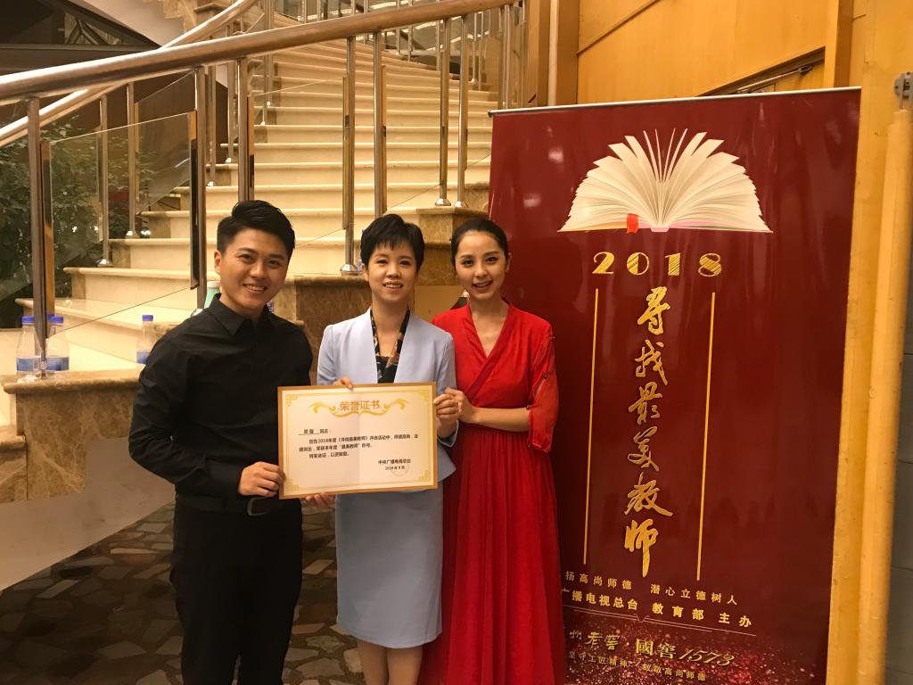 “这和我之前参与‘感动重庆十大人物’颁奖仪式是差不多的流程,走出来,挥手,走下来,回答问题……”,讲述起由中央广播电视总台和教育部主办的2018“寻找最美教师”评选活动中上台领奖的经历,我并没有感受到她领奖时的那一份优越。正如她自己所说:“唯一让我感受不一样的就是谢幕时,我的名字打在以国旗为背景的大屏幕上,那一刻,我觉得这是我一生中离国旗最近的一次。”当她说到自己与国旗之间的距离最近时,脸上露出了笑意,眼里透露着满满的激动。她,就是今年九月荣获"全国最美教师"称号的郑璇。